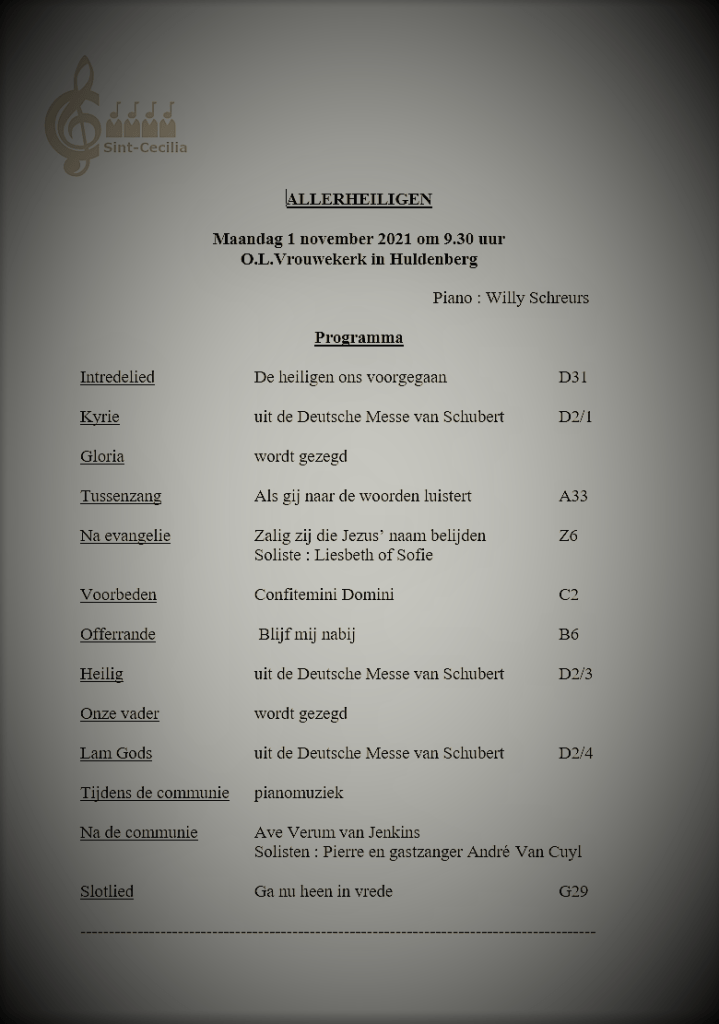 1 november 2021Zangkoor HuldenbergPlaats een reactie op Allerheiligen – O.L.Vrouwekerk in Huldenberg, 1 november 2021 Allerheiligen – O.L.Vrouwekerk in Huldenberg, 1 november 2021 Zangkoor plus gastzanger André Van Cuyl. “Ave Verum” van Jenkins, gezongen door Pierre en gastzanger André. Dit delen: Delen op X (Opent in een nieuw venster) X Share op Facebook (Opent in een nieuw venster) Facebook Vind-ik-leuk Aan het laden... Gerelateerd