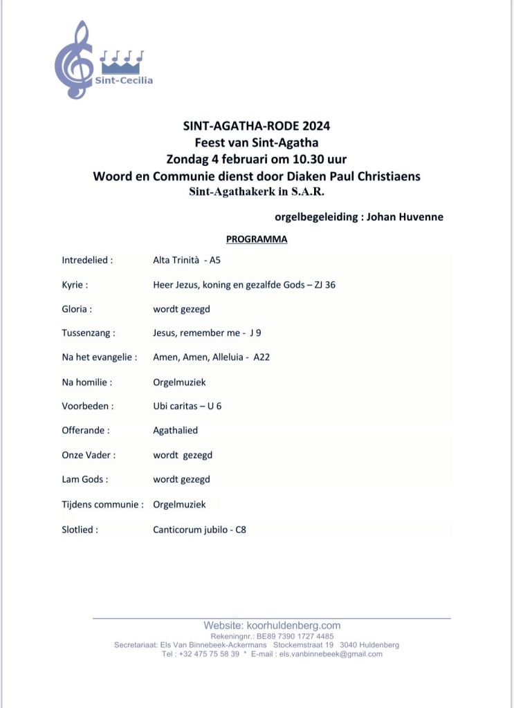 5 februari 20245 februari 2024Zangkoor HuldenbergPlaats een reactie op Sint-Agatha-Rode – feest van Sint Agatha, Zondag 4 februari 2024 Sint-Agatha-Rode – feest van Sint Agatha, Zondag 4 februari 2024 Dit delen: Delen op X (Opent in een nieuw venster) X Share op Facebook (Opent in een nieuw venster) Facebook Vind-ik-leuk Aan het laden... Gerelateerd