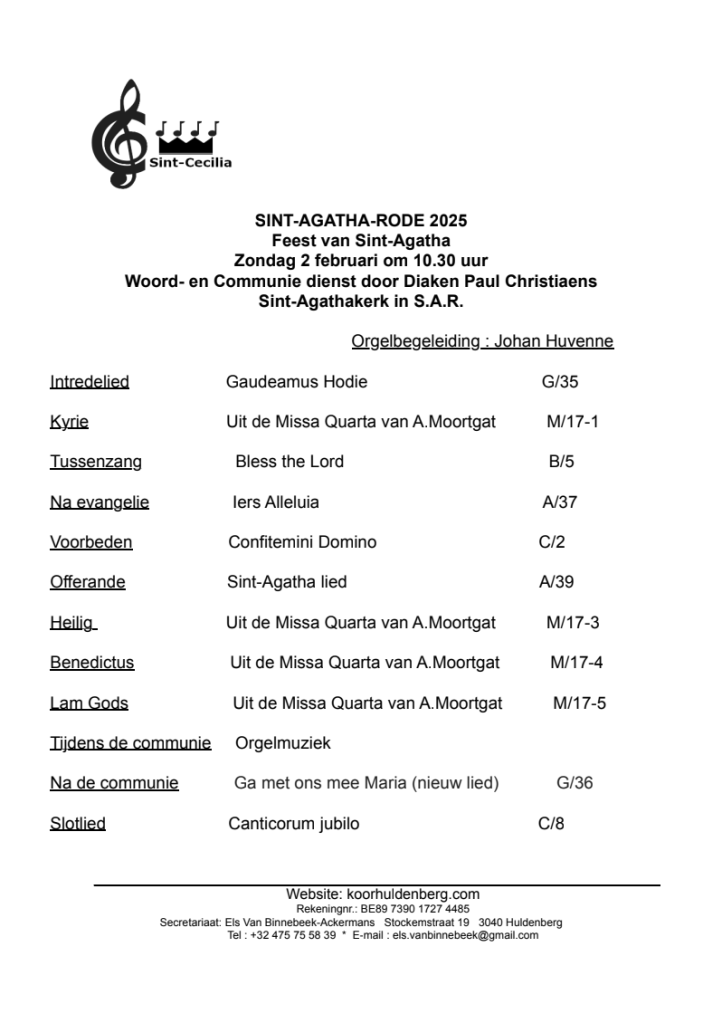 3 februari 2025Zangkoor HuldenbergPlaats een reactie op Sint-Agatha feest – Sint-Agatha-Rode, zondag 2 februari 2025 Sint-Agatha feest – Sint-Agatha-Rode, zondag 2 februari 2025 Oplus_131074 Oplus_131074 Dit delen: Delen op X (Opent in een nieuw venster) X Share op Facebook (Opent in een nieuw venster) Facebook Vind-ik-leuk Aan het laden... Gerelateerd